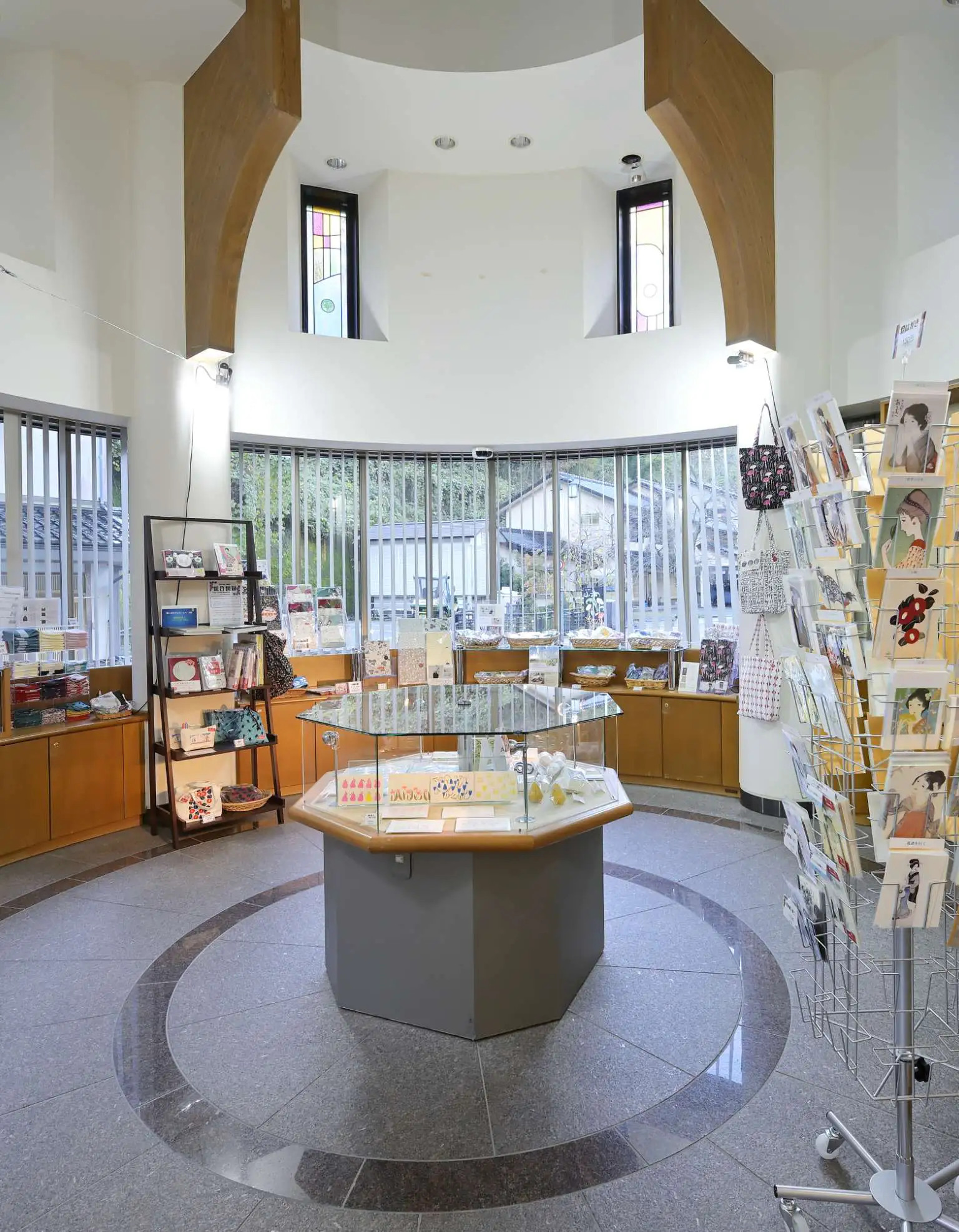 ミュージアムショップでは、夢二の絵柄を使ったポストカードや文具、手ぬぐい、和雑貨など、日常で使えるかわいらしいアイテムがそろっています。夢二館オリジナル商品や湯涌ならではの限定グッズもあり、お土産にもぴったりです。